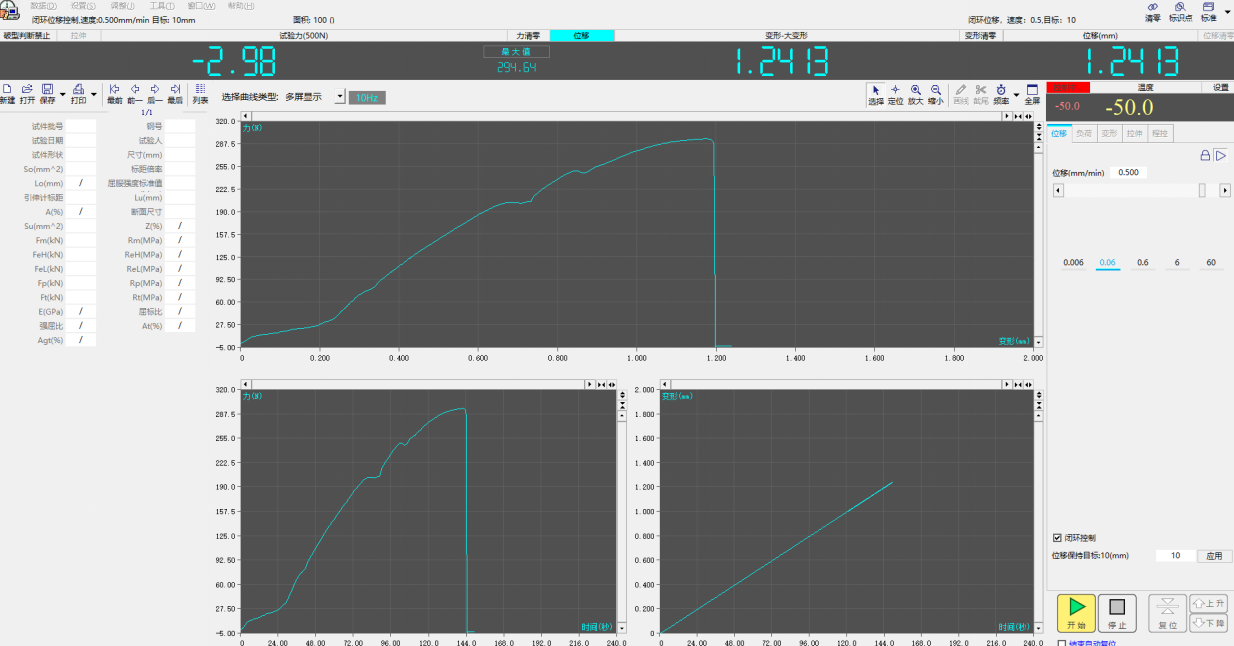 l能够实时记录试验曲线,并可随时切换观察力-时间、变形-时间、力-变形、力-位移和温度-时间等试验曲线