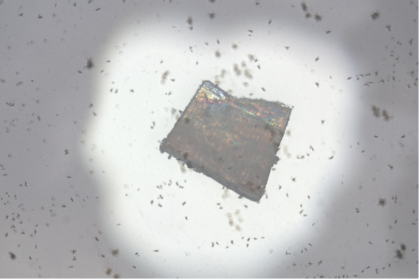 实验使用显微镜50倍的放大倍数观察发现,所测粒子在261.5℃时开始融化,经过升温再降温,发现材料在260.4℃时到达终融。