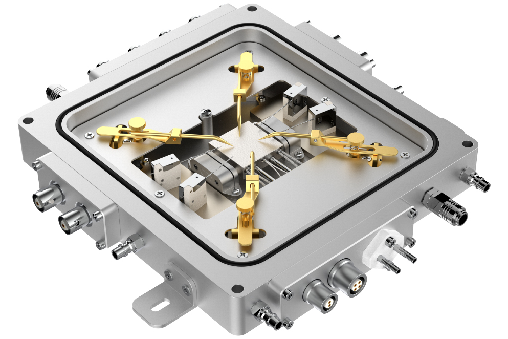 探针冷热台主要为电性测量而设计。针尖镀金的探针可以连接在热台腔室内部的电极上,针座可以移动,保证针尖可以接触到热台上的任何一个区域。探针压在样品上的力度可以通过弹簧调整。