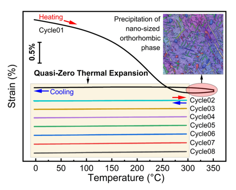 “热胀冷缩”是指材料随着温度升高或降低而发生的尺寸增大或减小现象。自然界中绝大部分金属材料都遵循“热胀冷缩”的普遍规律,LNTE钛金属材料可在一个特定方向上表现出反常的负热膨胀现象,其尺寸随着温度升高而减小,改进型产品LZTE钛金属材料可在数百度温度范围内保持尺寸的近乎恒定。