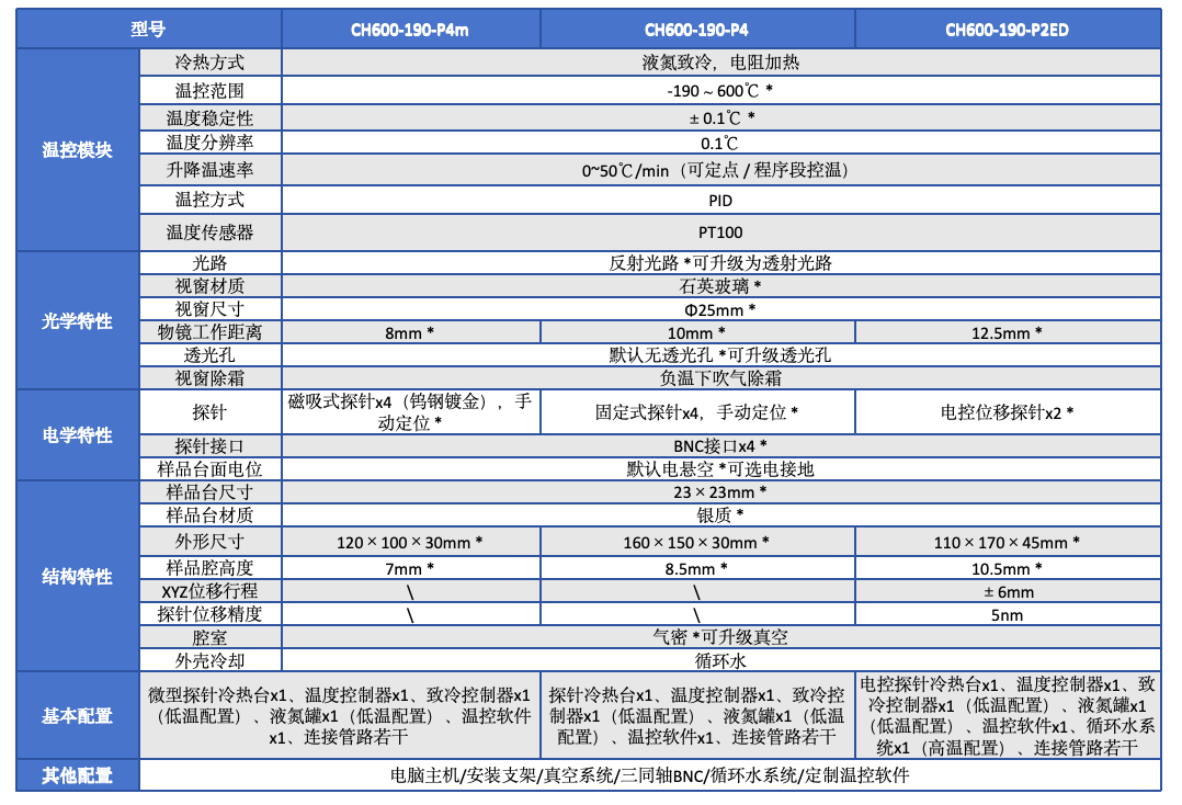 该产品采用液氮致冷、电阻加热的方式,实现样品台-190~600℃范围内精准控制,可与显微镜、电学仪表(如源表、万用表等)等搭配集成,进行变温原位测试。