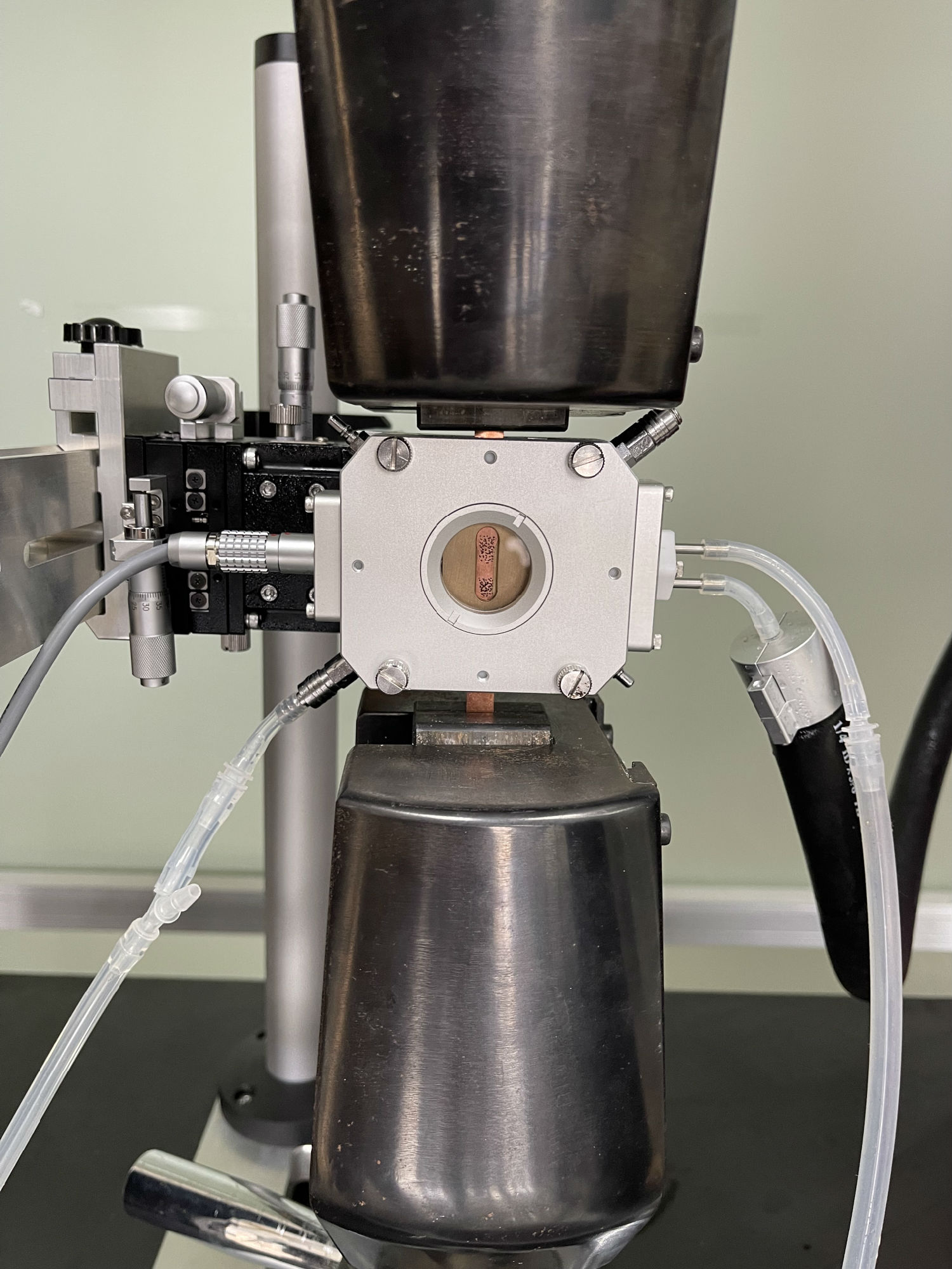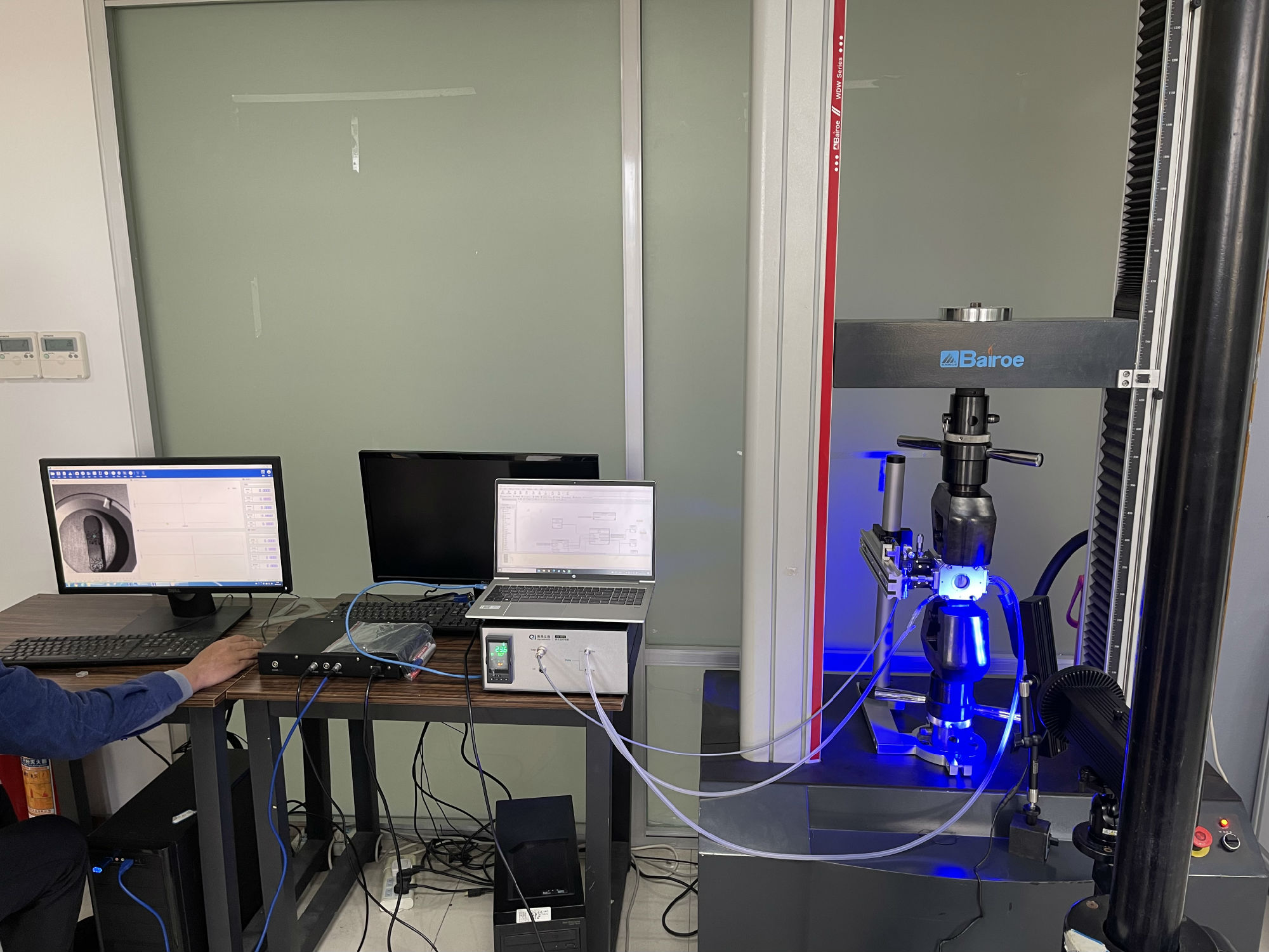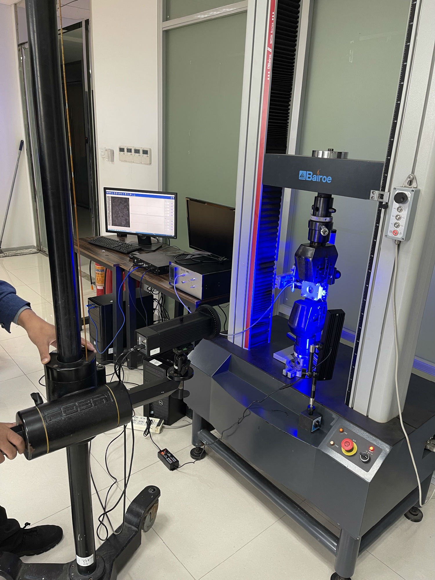 拉伸试验机冷热拉伸应变测试系统拉伸试验机冷热台,可将样品置于冷热台内,实现变温测试,适用各种材料。拉伸试验机冷热台支持在现有各种拉伸试验机上改造适配。视频引伸计(或DIC),通过非接触式的方式,获取试样在高低温下的变形,支持与试验机通讯,计算低温下材料的力学性能参数。