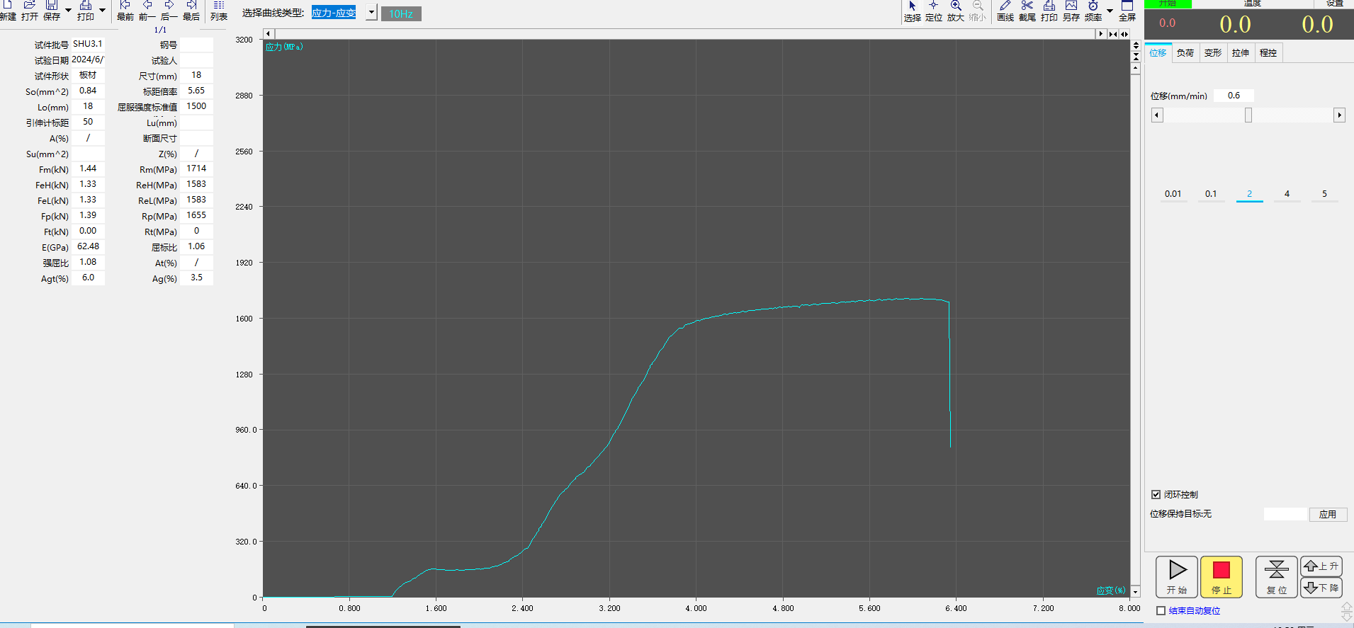 实验过程采用双向拉伸,拉伸速度0.6mm/min。