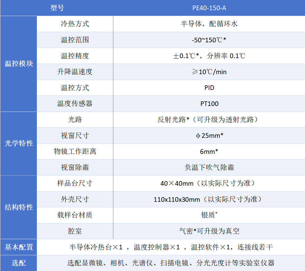 本次实验采用的半导体冷热台具有以下特点: