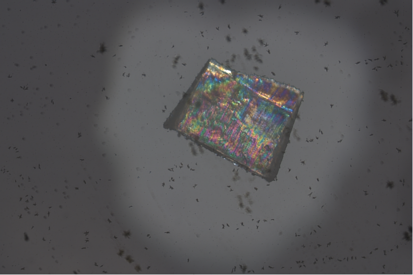 美工刀切取长0.7mm,宽0.7mm大小的样品放在载玻片中间,然后盖上盖玻片,在冷热台载样台表面涂一层导热硅脂用于传热,将载玻片放在上面,样品要透过下面的透射孔。
