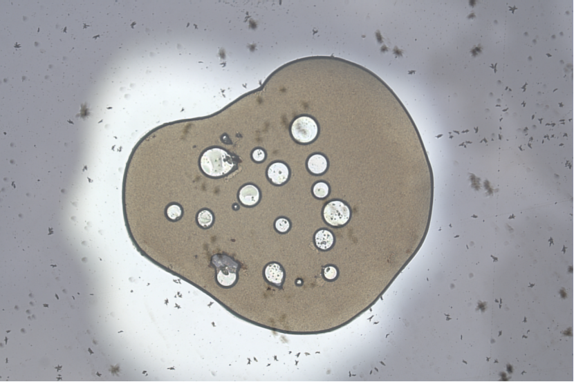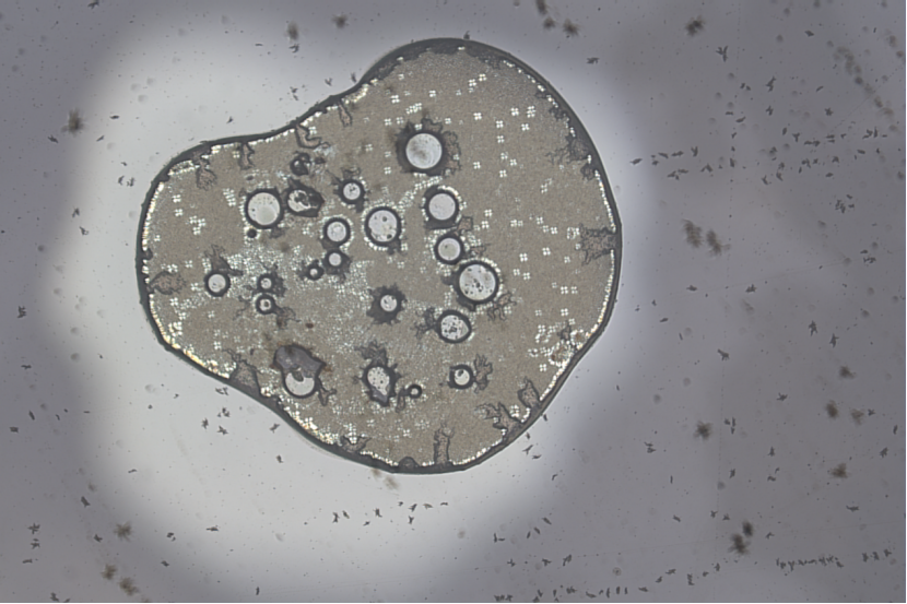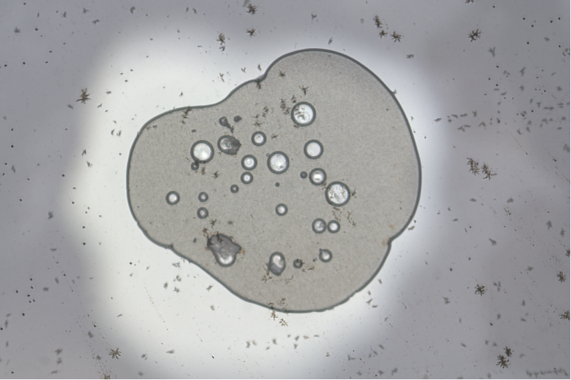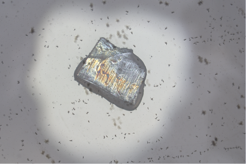 实验使用显微镜50倍的放大倍数观察发现,所测粒子在261.5℃时开始融化,经过升温再降温,发现材料在260.4℃时到达终融。